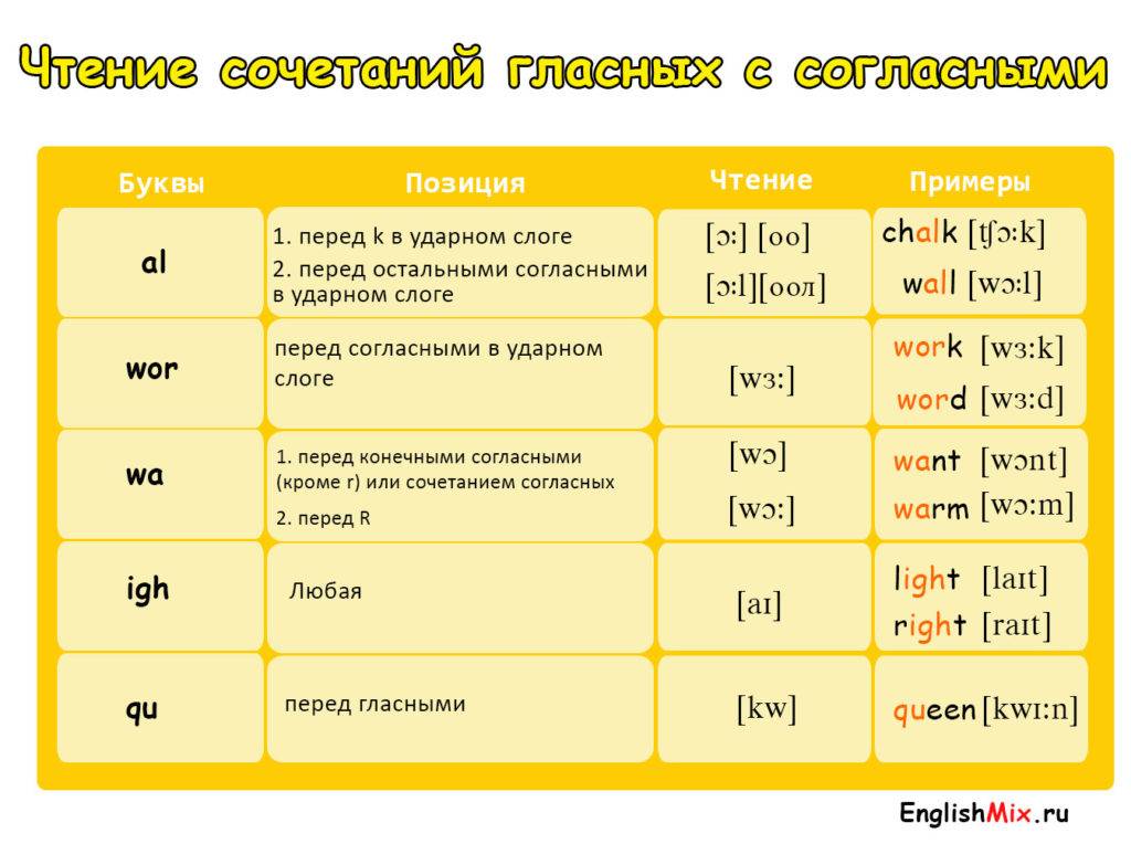 Чтение английских буквосочетаний таблица. Сочетание гласных с согласными