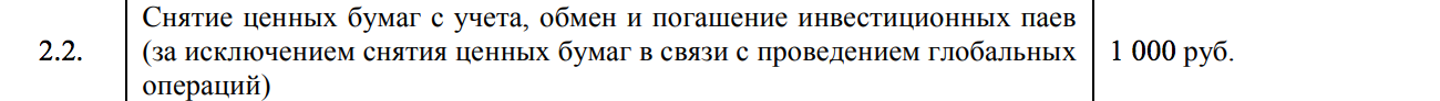 Стоимость в депозитарии Брокера-1 за вывод бумаг со счета. 1000 Р за одно наименование бумаги