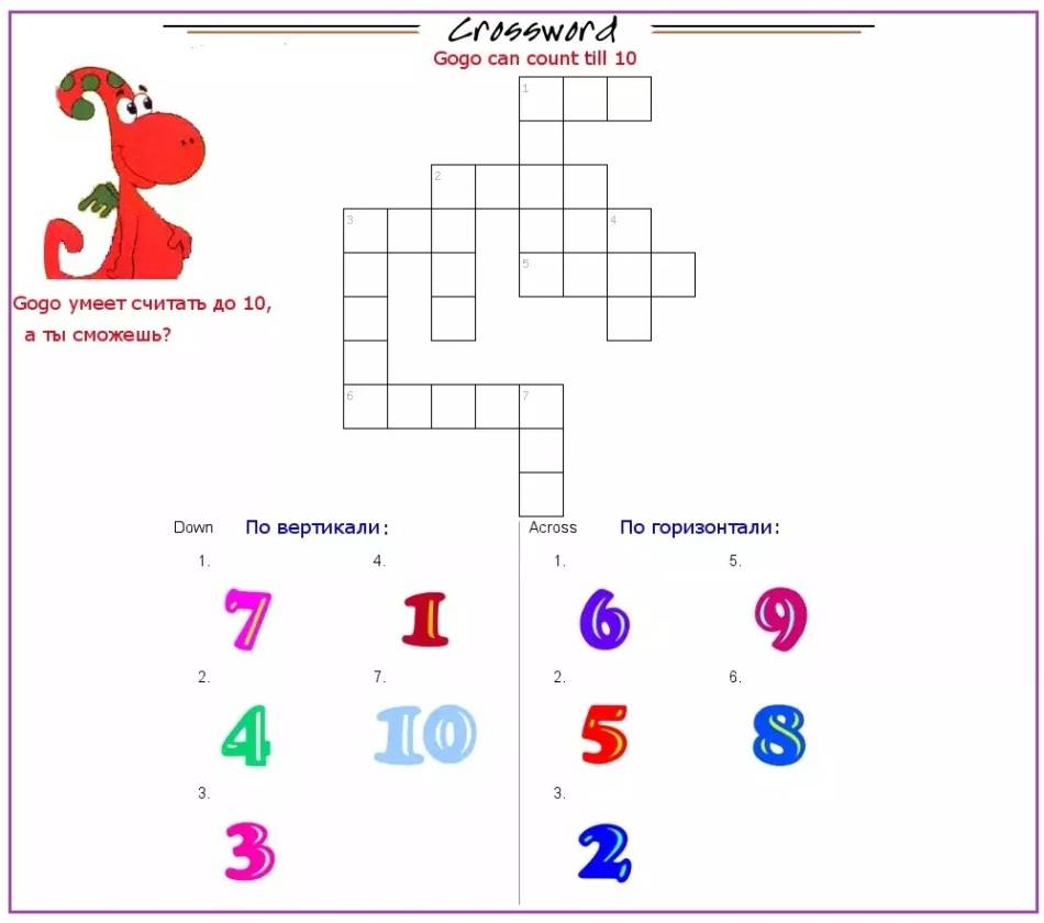 - Задание № 1: Разгадайте кроссворд, вписывая словами числительные (ниже вам предложена подсказка какие именно цифры находятся по вертикали, а какие по горизонтали).