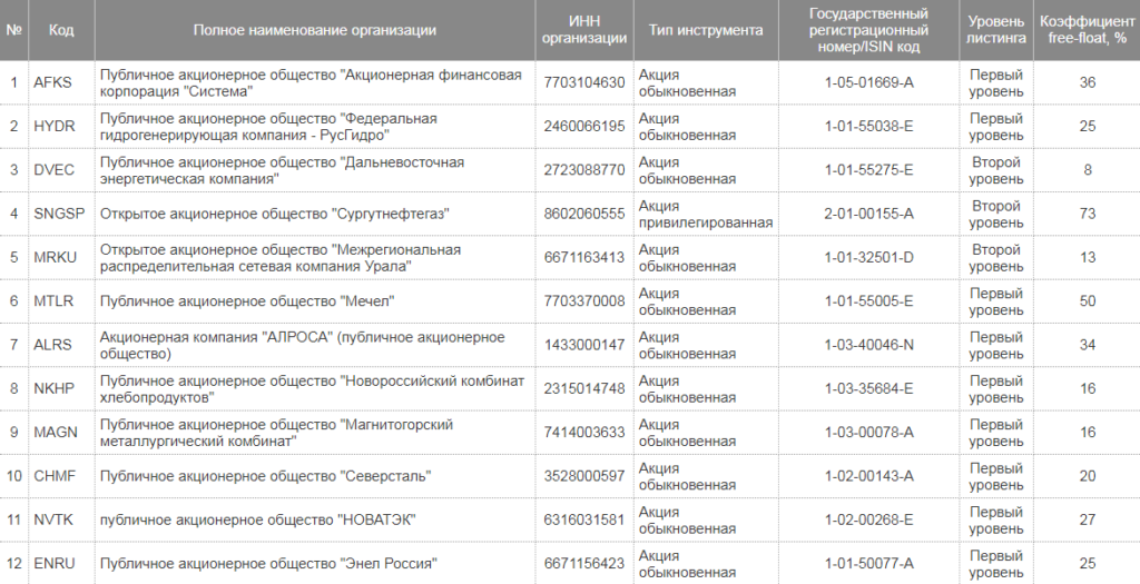 Второй момент — первые три компании российских эмитентов в списке это не обыкновенные, а привилегированные акции. Причина проста: такие акции не дают возможность влиять на компанию, поэтому их безопасно выставлять на биржу в большой доле, вплоть до 100%. Ведь иначе скупка более половины (50% плюс акция) бумаг компании даст покупателю право принимать все ключевые решения.