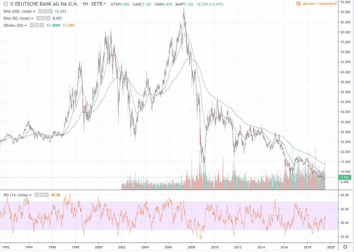 На скриншоте ниже приведен график цены Dotchebank (крупнейшего банка Германии и Европы):