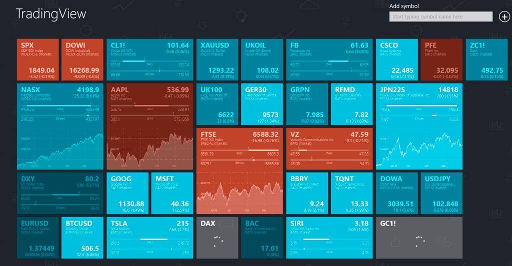 Отдельно хочу отметить для трейдинга облачную платформу TradingView. Здесь можно торговать фьючерсами и валютами. Есть свои инструменты для анализа цен и построения графиков.
