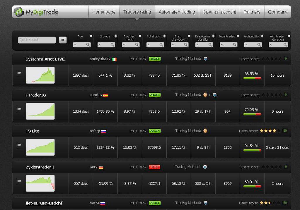 Есть инструменты для анализа успешности поставщиков сигналов, а также много фирменных опций для управления капиталом. Минус — небольшое количество поставщиков сигналов (пока чуть больше 200).