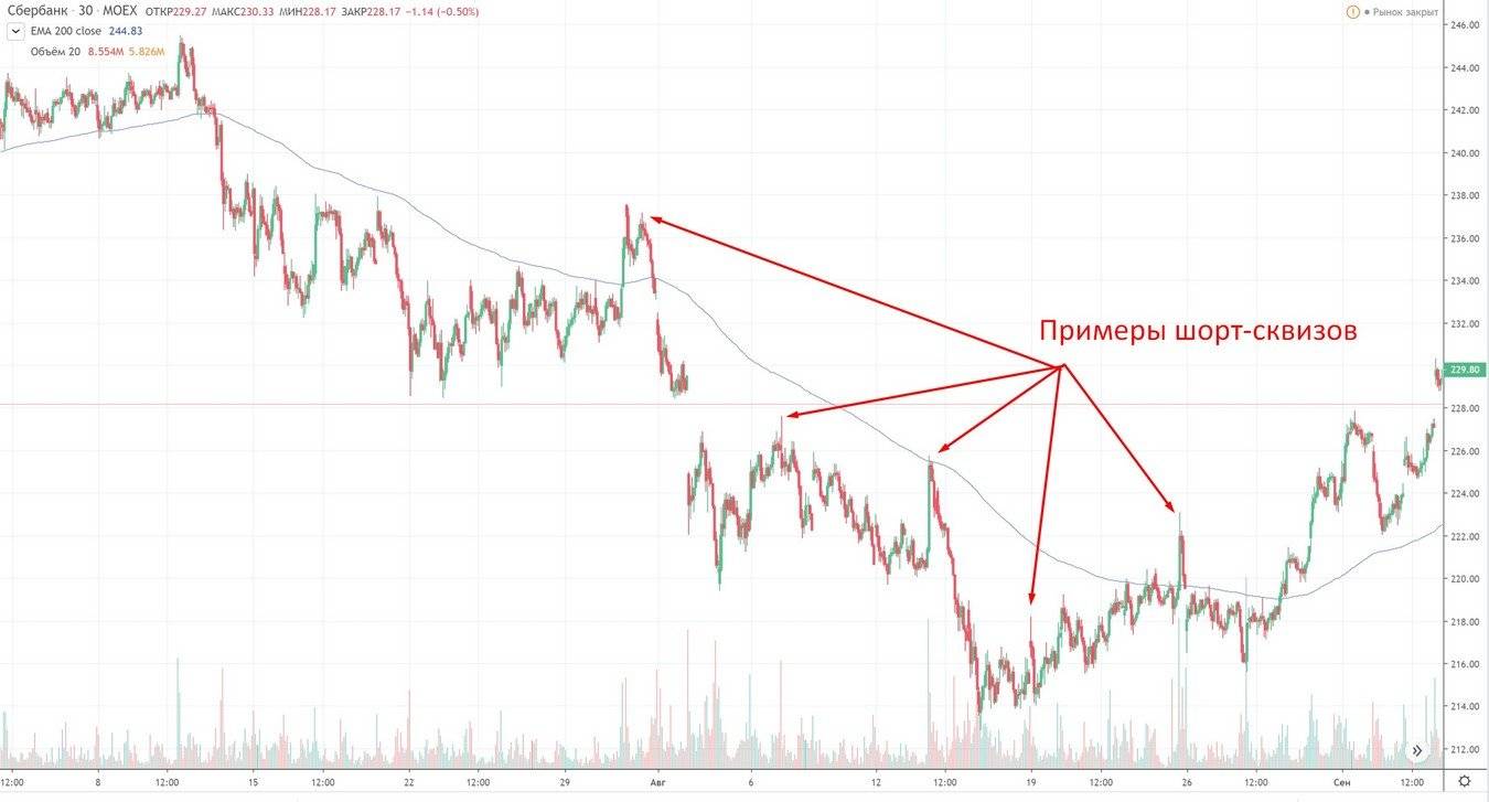 Шорт-сквиз (от англ. «short squeeze» — короткое сжатие) — это резкое движение цены вверх с последующим резким откатом вниз. Другими словами, это выбивание «шортистов» по стоп-лоссам и маржин колам.