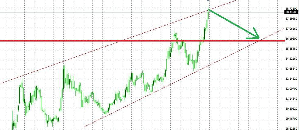В последнее время рубль пробивает исторические минимумы. Основными двигателями инфляции служат дешевеющая нефть, сложная обстановка на Украине и экономические санкции других государств в отношении России. По оценкам экспертов данная ситуация не может продолжаться вечно, а значит котировки рубля должны откатиться хотя бы до отметки 36 рублей. Эту теорию отчасти подтверждает технический анализ графика котировок пары доллар\рубль.
