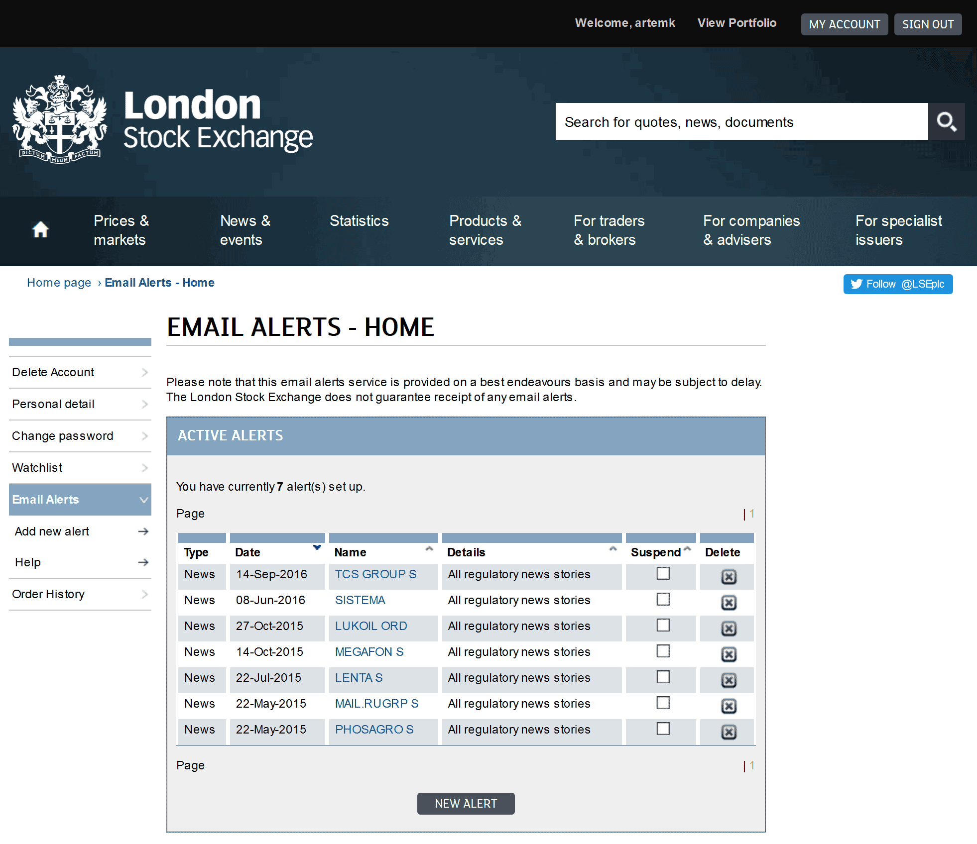 Подписка на сайте London Stock Exchange. Акции многих российских компаний торгуются одновременно в Москве на Московской бирже и в Лондоне на London Stock Exchange. Сайт Лондонской фондовой биржи позволяет подписаться на новости компаний и без задержек получать их по электронной почте.