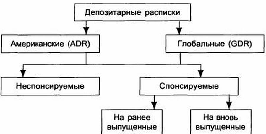 Эти депозитарные расписки делятся на несколько типов: