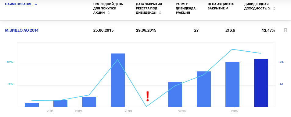 Кроме того, неплохую дивидендную историю имеют Сургутнефтегаз, Башнефть, Норильский никель. Ниже пример нестабильных выплат у крупной российской компании М.Видео: