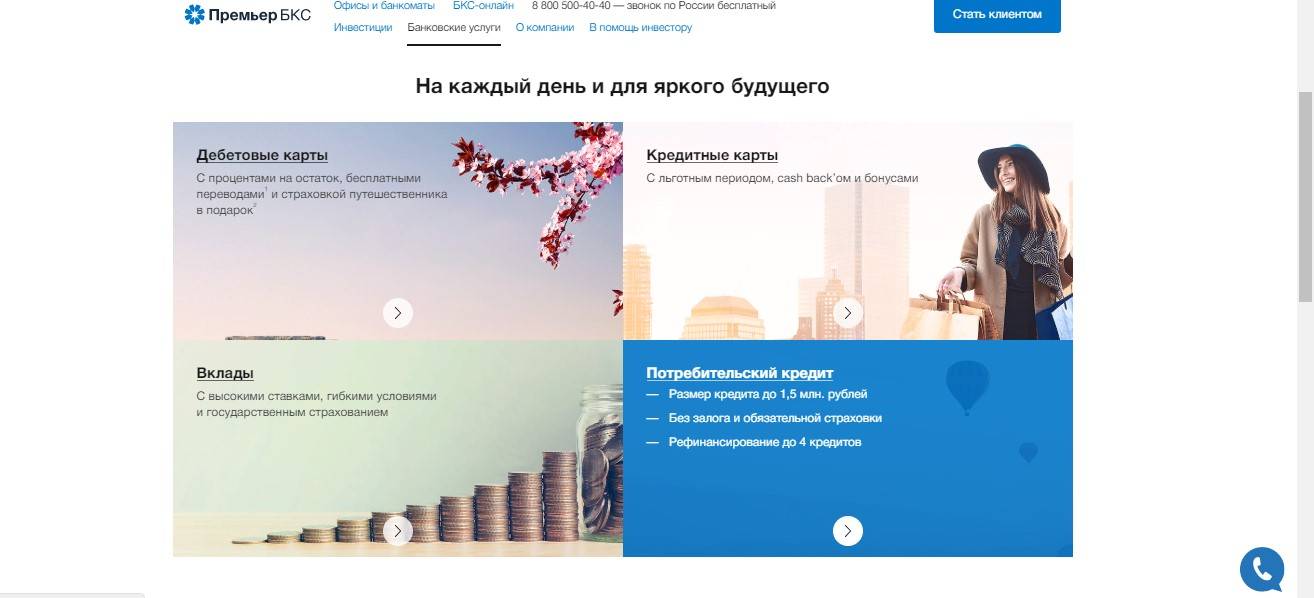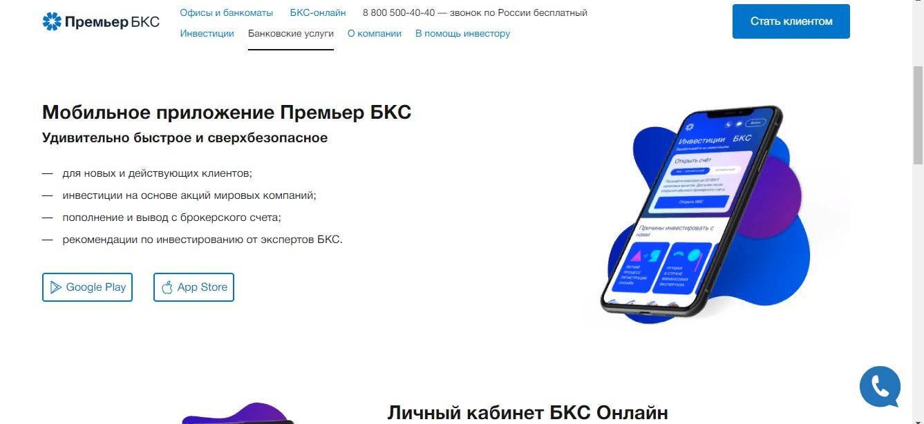 На главной странице сайта можно зарегистрироваться и получить возможность входить в личный кабинет БКС Премьер для работы. Ресурс имеет интуитивно понятный интерфейс.