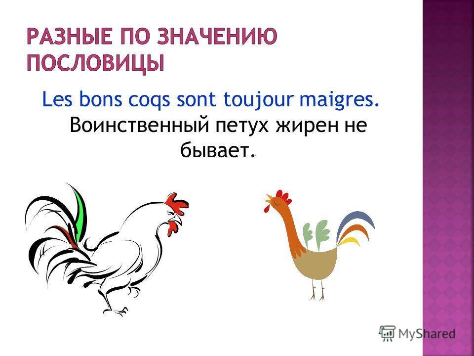 Les bons coqs sont toujour maigres. Воинственный петух жирен не бывает.