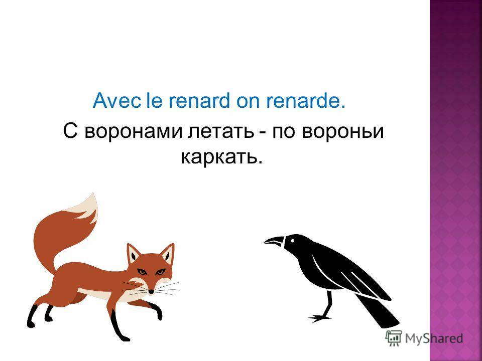 Avec le renard on renarde. C воронами летать — по вороньи каркать.