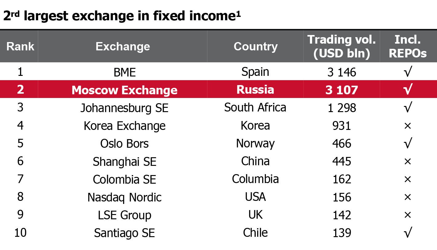 По статистике Московской биржи за первую половину 2019 года, она занимает второе место в мире по торговле инструментами с фиксированным доходом. А по торговле акциями — всего лишь 26-е