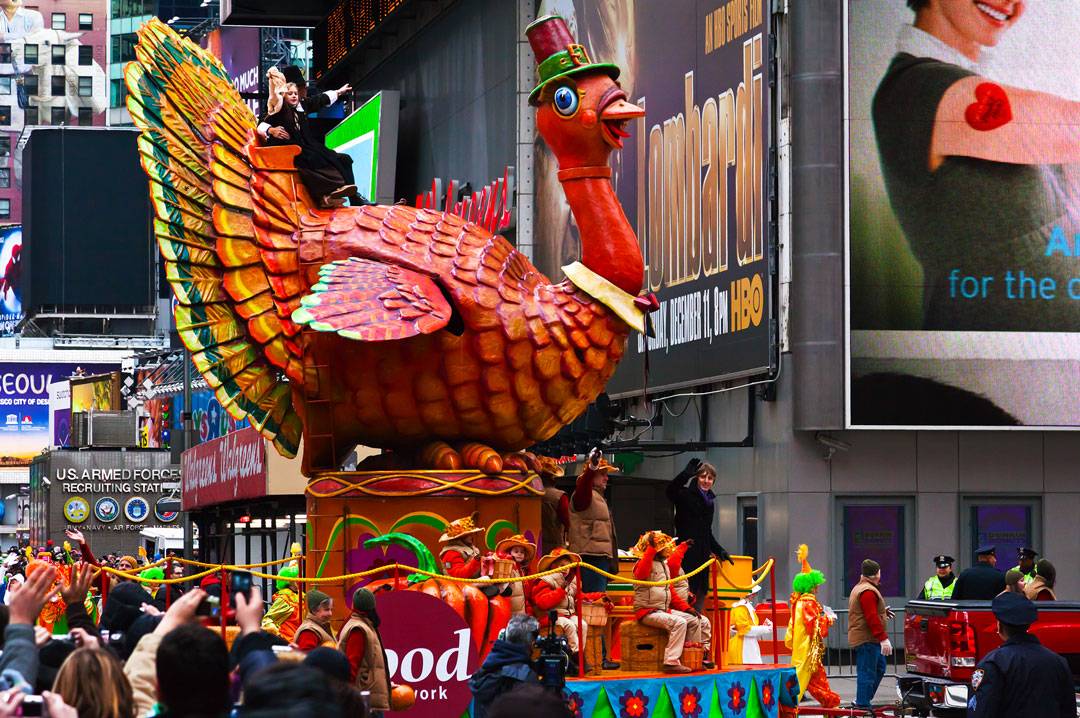 Накануне Дня благодарения обычно готовят праздничную еду и смотрят телевизор: кто-то предпочитает футбольный матч, а кто-то — тематический парад, который ежегодно организует сеть супермаркетов Macy’s в Нью-Йорке. Главная достопримечательность парада — надувные игрушки, которые проносят от Центрального парка до входа в универмаг напротив Геральд-сквер.