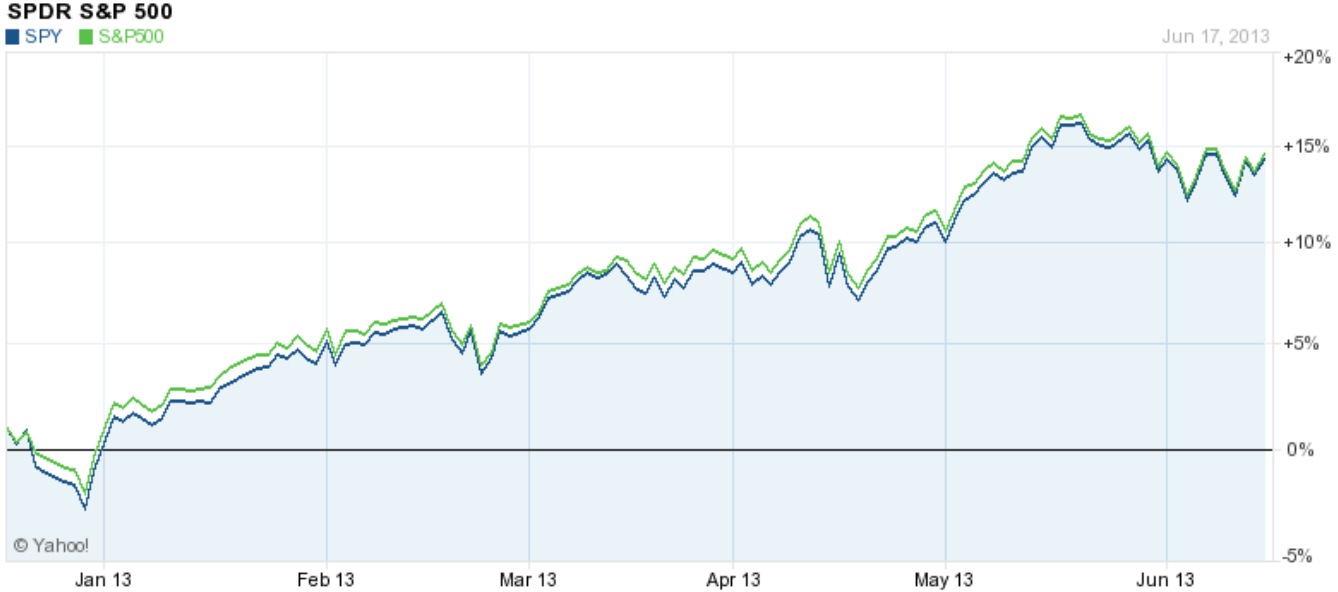 Котировки SPY немного ниже основного индекса ввиду поправки на затраты
