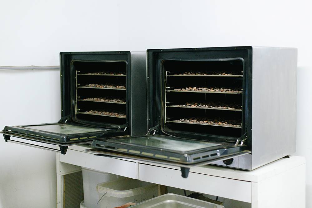 После их оставляют в печи с открытой дверцей и выкладывают остывать на 30—40 минут. На этом этапе из бобов выделяется какао-масло, поэтому их нельзя сразу пускать в работу.
