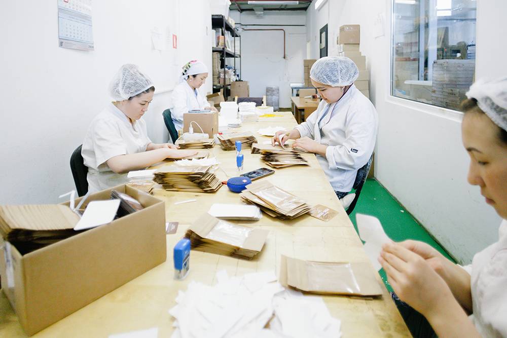 Упаковщицы за смену заворачивают в коробочки 500 плиток шоколада