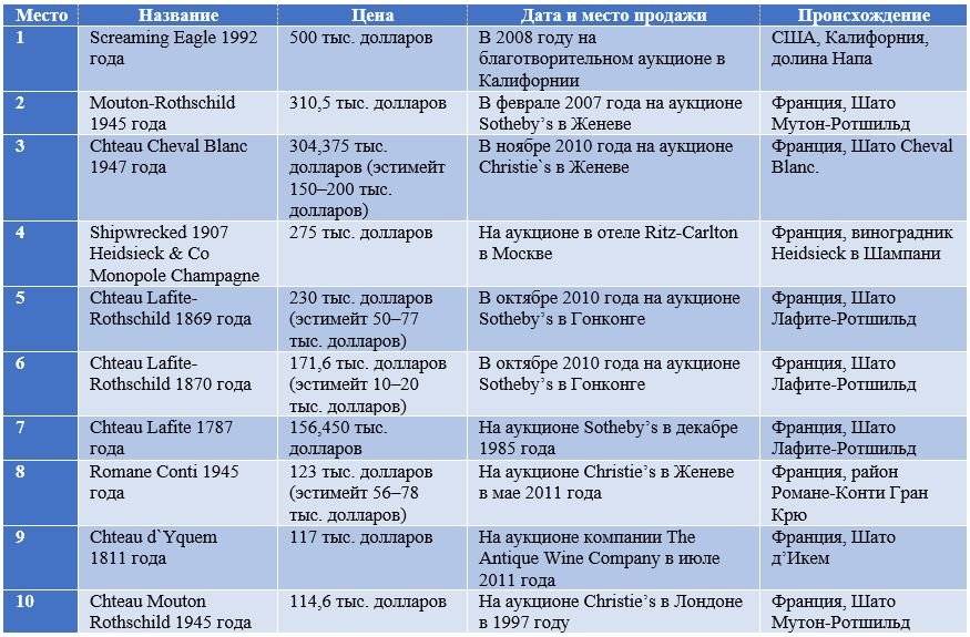В развитых странах, как Англия, Франция, Австралия, США, элитные вина стали продаваться на аукционах еще более ста лет назад. Чем старше вино, тем лучше его вкус, а значит, и выше цена. Конечно, на винных вложениях не заработаешь быстро. Но за пять или десять лет цена на вино может подняться до 10 раз. Даже золото за последние 10 лет подорожало значительно меньше, чем вино. Для сравнения: цена на золото поднялась на 300 процентов, а цена на Лафит Ротшильд из Бордо за этот же период взлетела на 850 процентов.