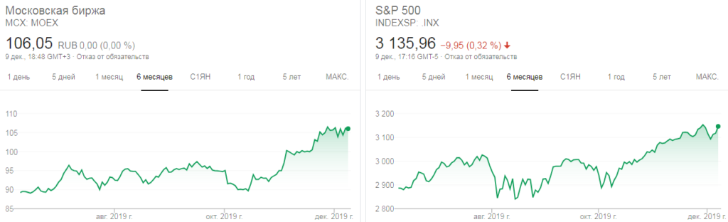 Индексы Мосбиржи и S&P500