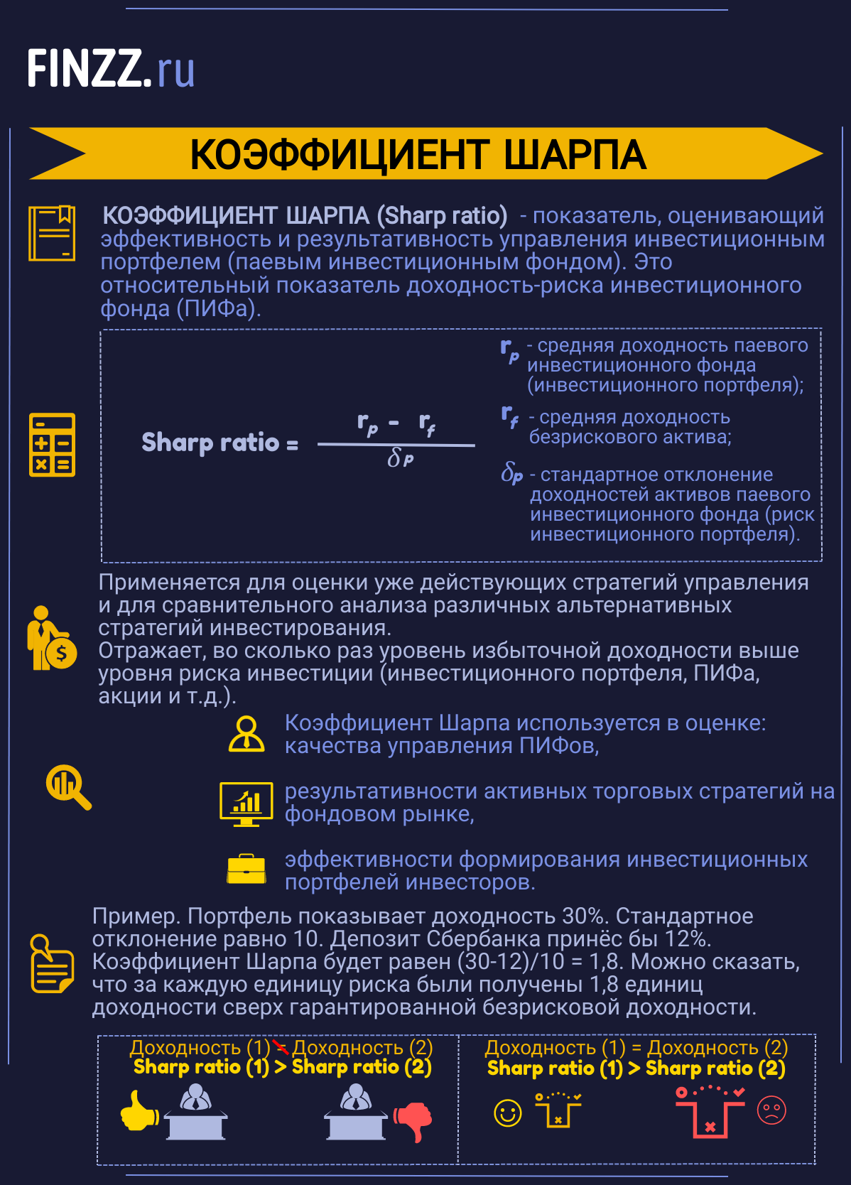 Инфографика. Коэффициент Шарпа (основные моменты)