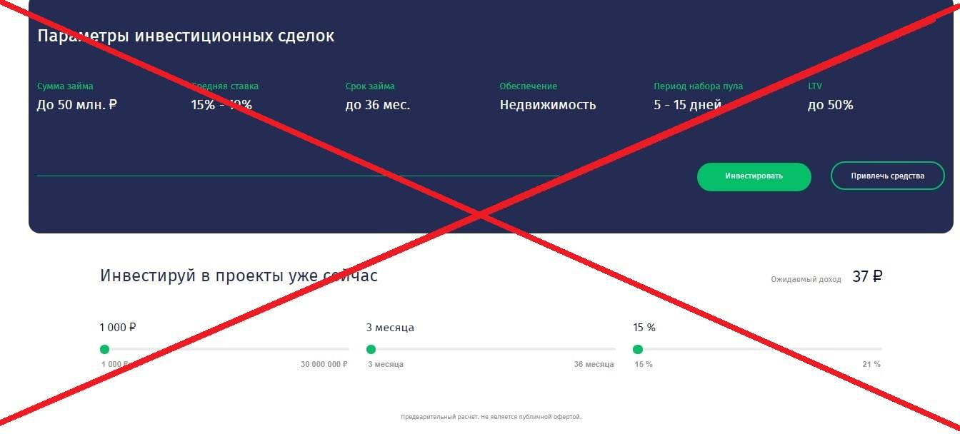 - Платформа не только позволяет найти предложения и разместить их, но и может выступать сооинвестором.