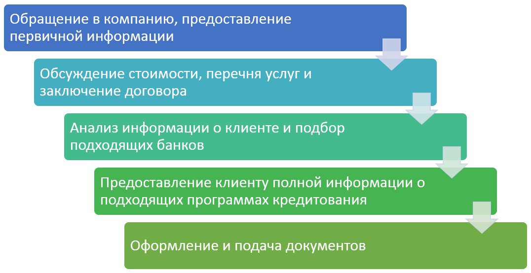 Схема работы кредитного брокера включает несколько этапов: