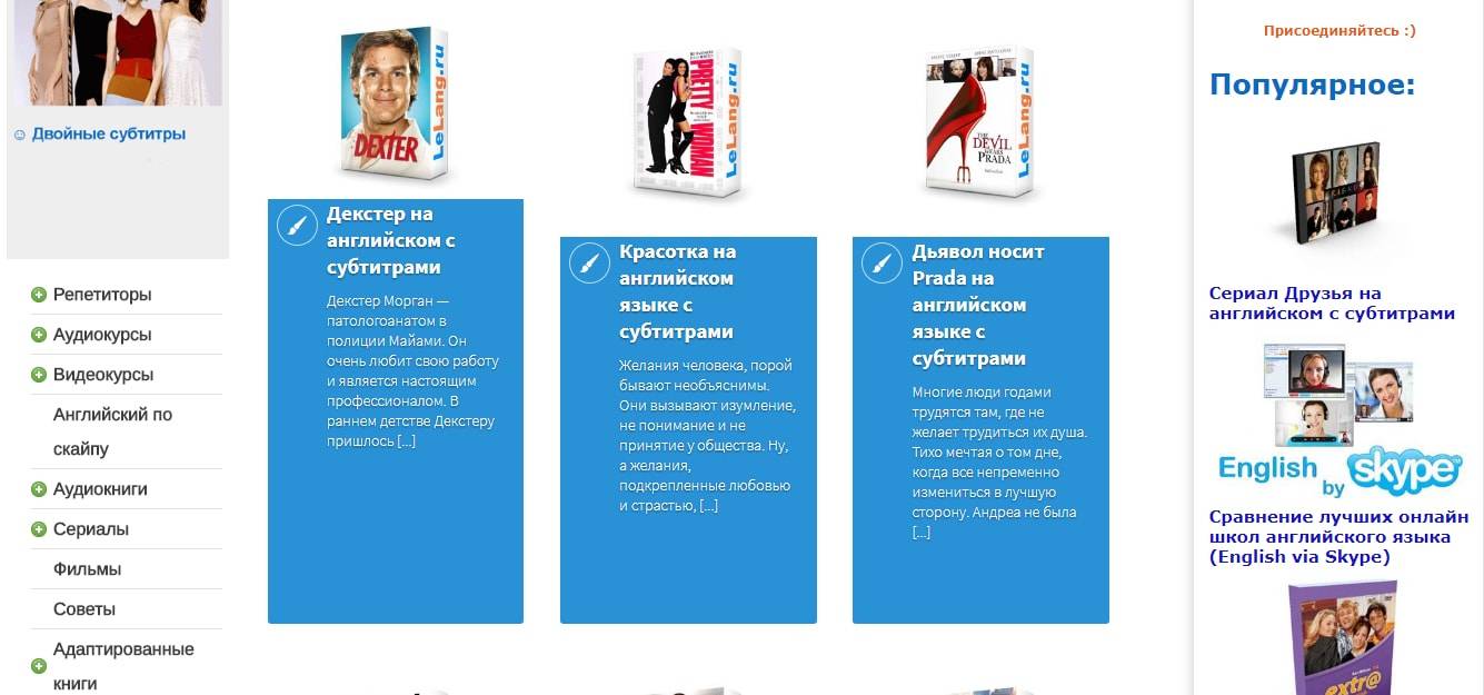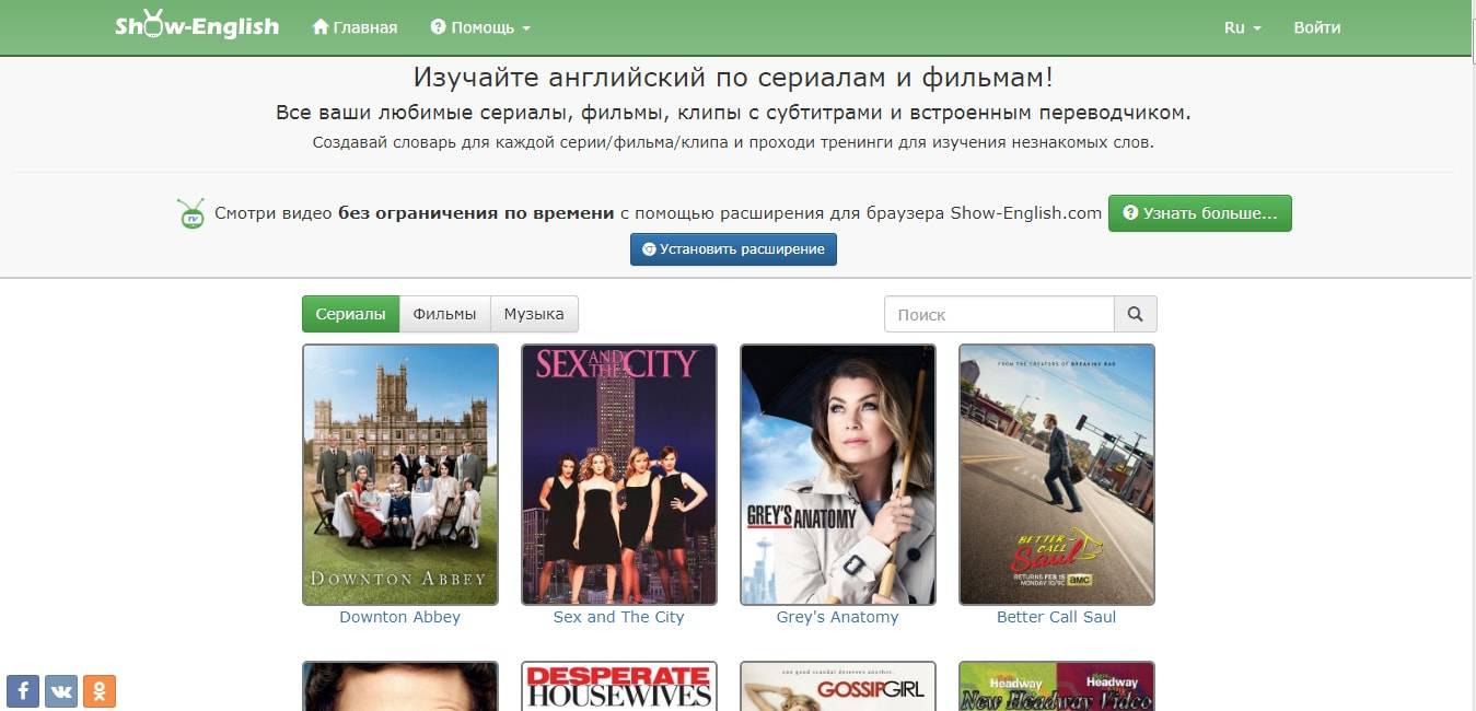 Этот сайт – настоящая находка для тех, кто изучает английский по фильмам и сериалам. Ведь помимо просмотра можно создавать свой словарь для изучения, а также выполнять предложенные упражнения. Нельзя не отметить, что время просмотра лимитировано. Но это можно исправить, установив расширение для просмотра без ограничения.