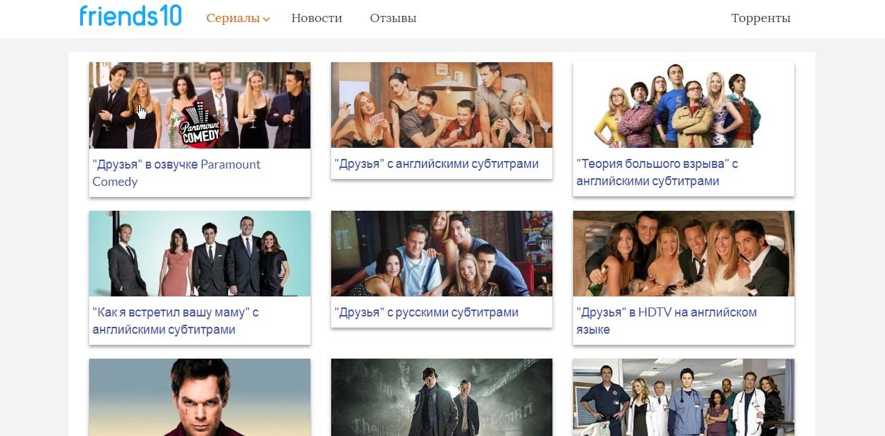 Любителям самых рейтинговых сериалов однозначно понравится этот сайт. Безусловно, на нем представлено не так много вариантов. Но тем не менее, все они имеют английские субтитры. Кроме того, на сайте полностью отсутствует реклама, что делает сайт несомненным фаворитом многих пользователей.