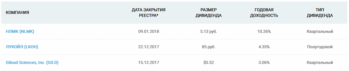 Компании с самыми высокими дивидендами (по данным сервиса) выставлены в начале раздела: