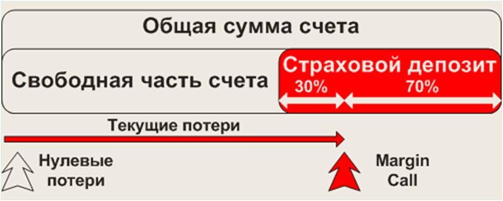 Если соотношение по формуле становится 0,5 и меньше, то сделки будут принудительно закрыты. По некоторым инструментам (зависит от условий договора с брокером) соотношение не может быть меньше единицы.