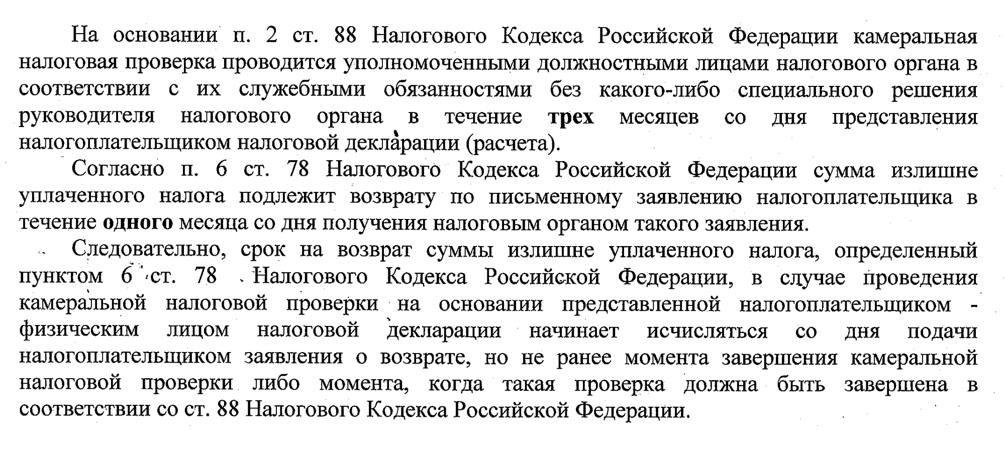 Ждать денег приходится в среднем четыре месяца. Три месяца — это официальный срок рассмотрения декларации со дня ее представления.