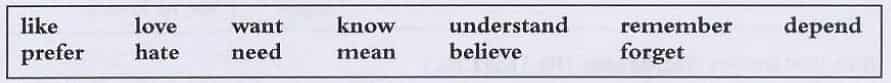 Примечание: есть несколько английских глаголов, которые не употребляются в настоящем продолженном времени, это так называемые глаголы чувств и восприятия: