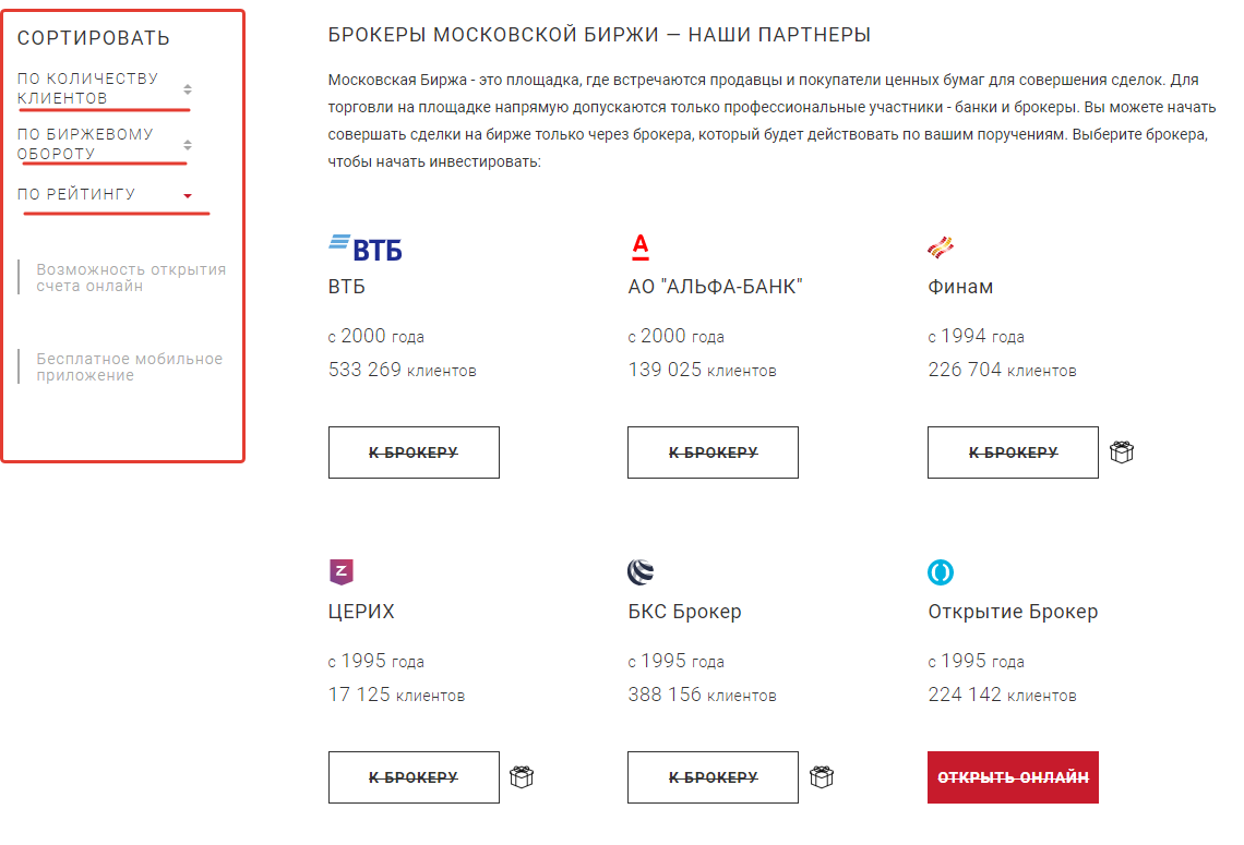 И на сайте Московской биржи тоже есть свой рейтинг, в который входит вся наша пятерка брокеров.