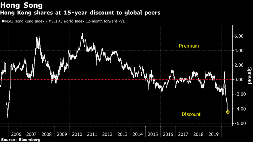 Динамика премии/дисконта ГонКонгских акций по P/E
