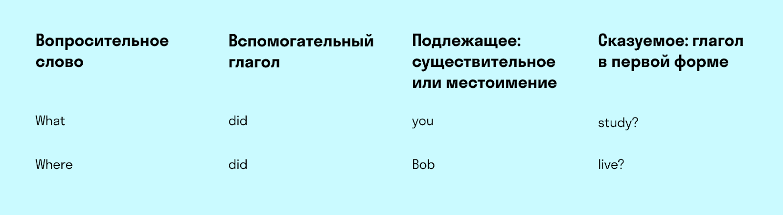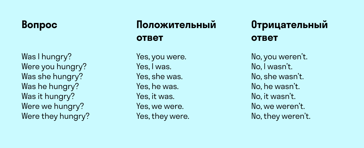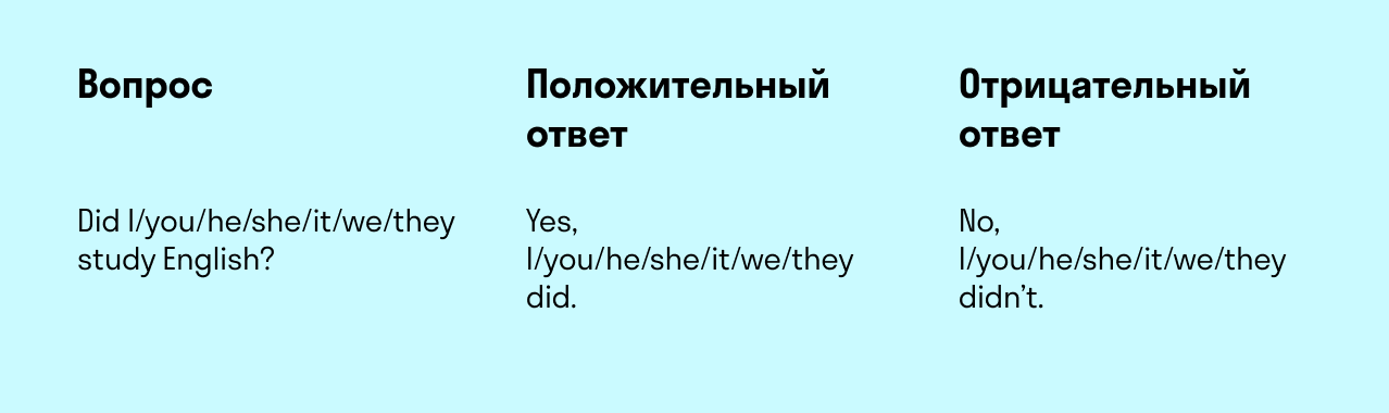 Примеры вопросительных предложений в Past Simple: