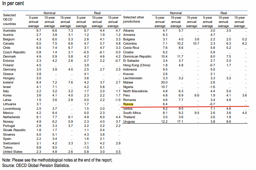 В 2018 году у России минус 1.4%. Хотя это еще не показатель: только 5 стран ОЭСР принесли инвесторам в том же году положительную доходность.
