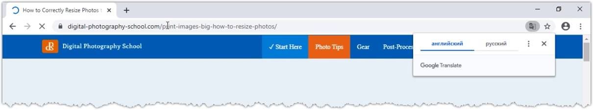 Текущая страница будет переведена на русский, а в верхней части окна будет отображаться меню с настройками перевода.