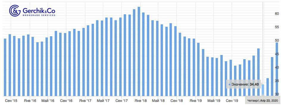 Пандемия коронавируса также привела к очередному замедлению производственного сектора Германии. В апреле PMI достигал уровня 34,40. А это говорит о значительном спаде.