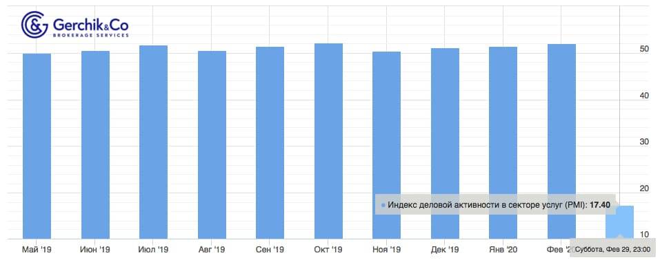 Так, PMI в сфере услуг Италии до пандемии был на уровне 51–52, а в феврале упал до 17,40 (17,40, Карл! Глубочайший кризис!).