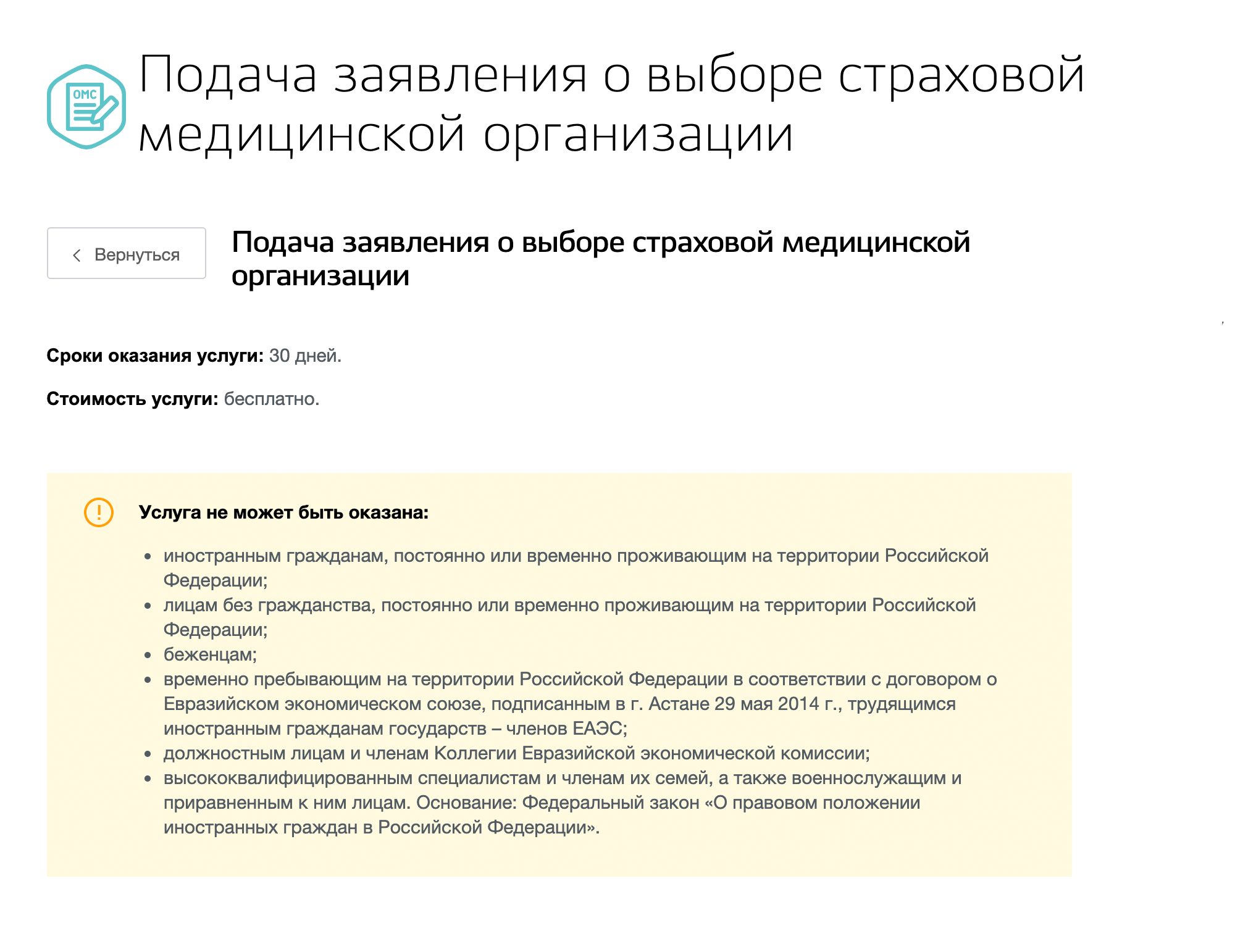 В вуз я не поступаю и в другой регион не переезжаю. Единственное, что нашел на госуслугах из необходимого мне сейчас, — это подача заявления о выборе страховой медицинской организации.