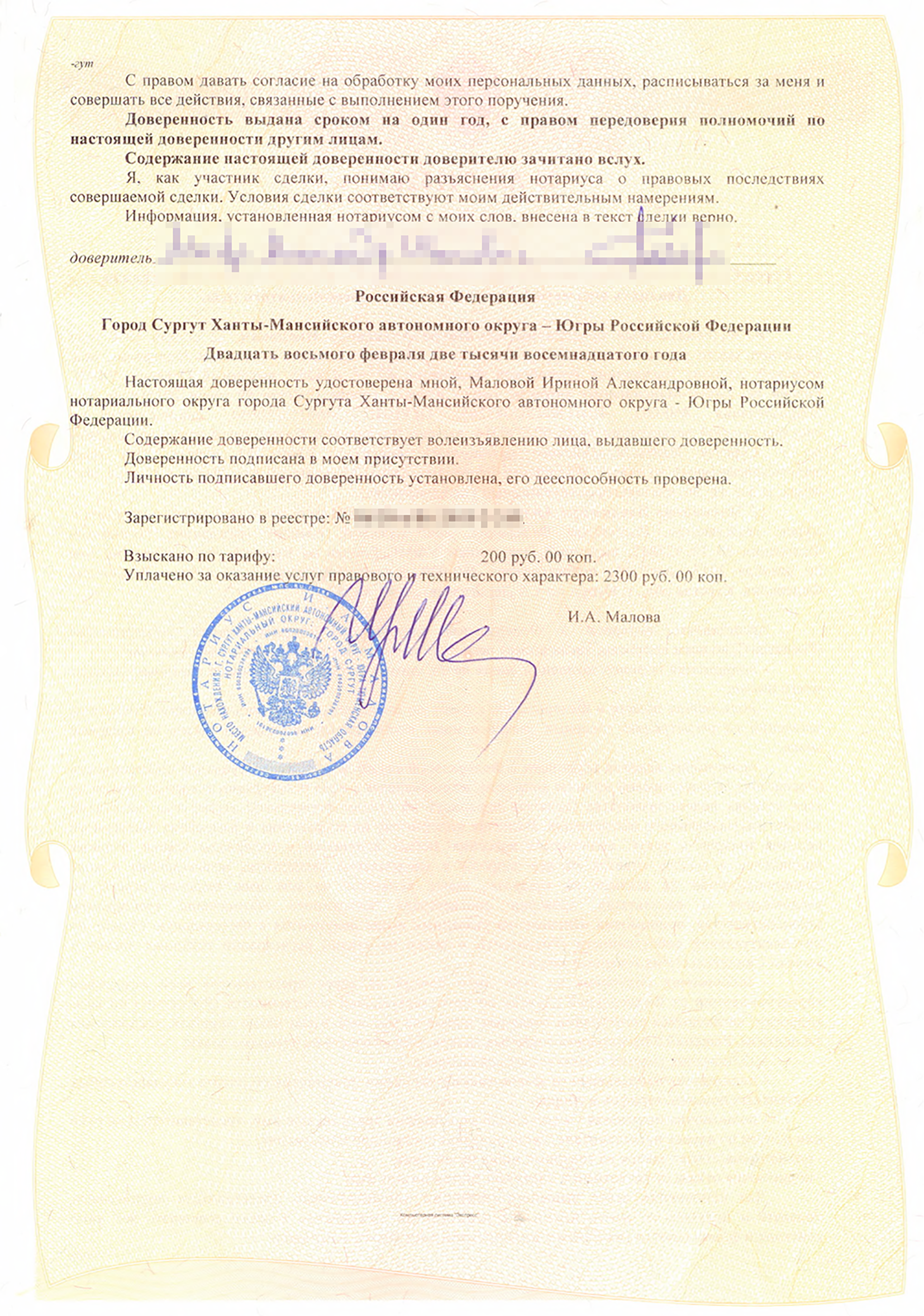 Даже если доверенность составлял нотариус, в нотариальной конторе ее нужно прочитать и проверить. Нотариус может опечататься в важных сведениях, например в фамилии или адресе. В дальнейшем это можно исправить у того же нотариуса бесплатно, но лучше проверить все на месте.