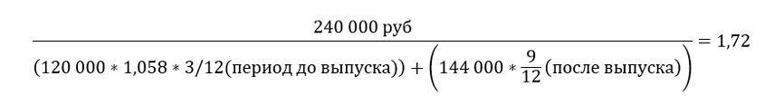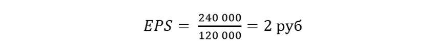 Предположим, что у компании в обороте находится 120 000 акций. За последний год ее итоговый финансовый результат составил положительную величину в 240 000 рублей.