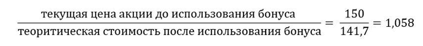 Действовать следует в несколько этапов. Первым делом я рассчитаю теоретическую цену для акционера, когда он воспользуется своим бонусом.