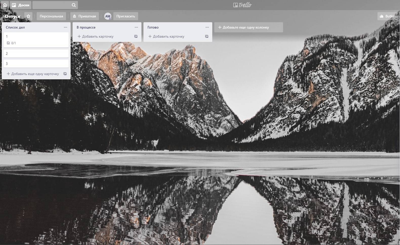Для большей персонализации можно изменить фон сервиса. Для этого достаточно пары кликов в меню. В галерее Trello есть готовые фоны с видами природы, однако пользователи бесплатной версии не смогут добавить свой собственный вариант.