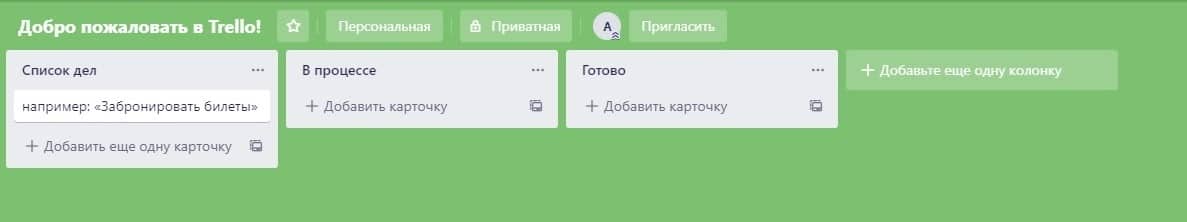 Функционал Trello должен упрощать взаимодействие между сотрудниками организации и (как следствие) повысить скорость и качество работы. Основным инструментом, с помощью которого этого можно добиться, является “доска”. Это раздел, где закреплены текущие, выполняемые и завершенные задачи. Последние, в свою очередь, представлены в виде стикеров. У пользователей есть возможность создавать, изменять и удалять задачи, а также их состояния, например, “На согласовании”, “У заказчика” и т. д. Кроме того, можно добавлять описание и перемещать задачи между разделами.