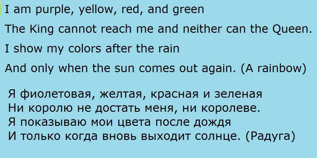 Загадки на английском языке по теме «Прилагательные» с транскрипцией и переводом