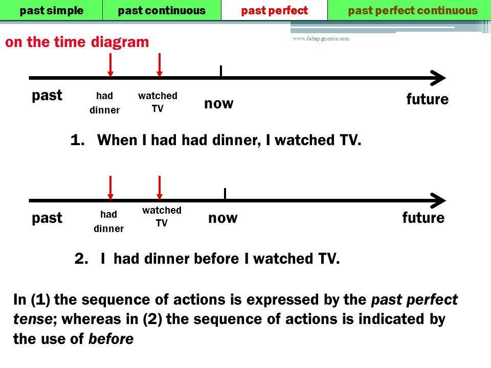 by… (к какому-то моменту, before (перед тем как), earlier (раньше), when (когда), first (сперва, сначала), after(после того как). |