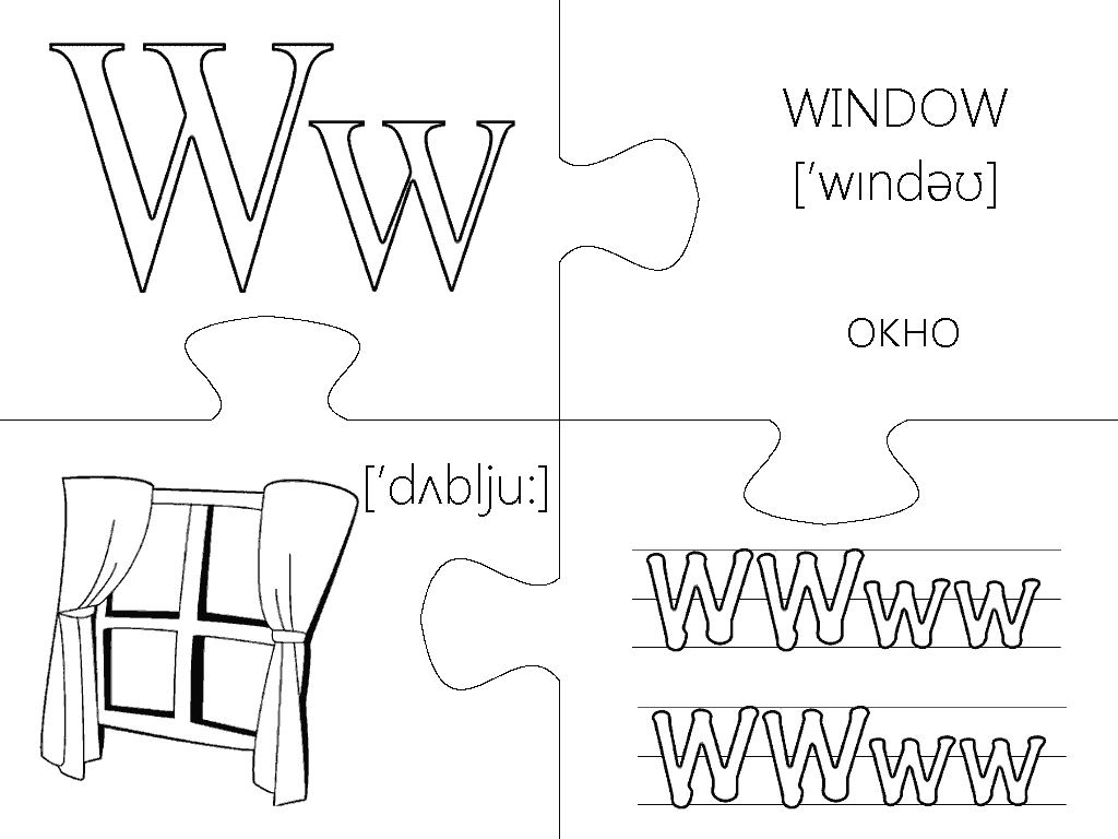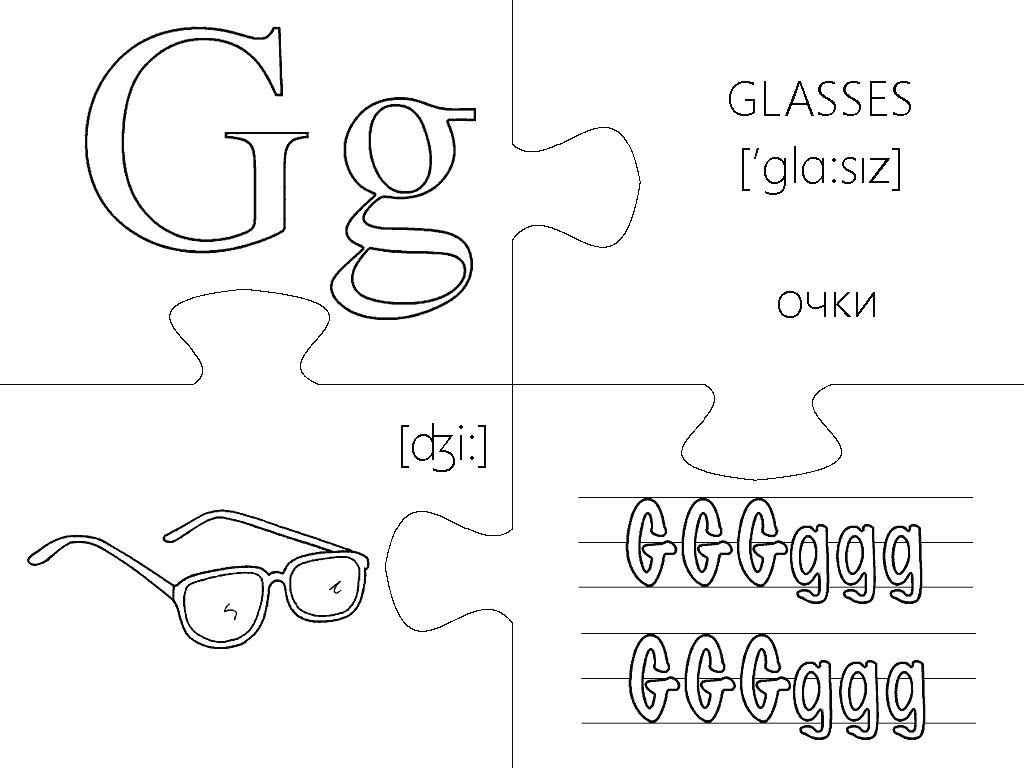 Еще одна версия пазлов, где каждая буква изображена в виде интересной раскраски и занимает целую страницу А4. Вырезание, разукрашивание и складывание всех элементов займет вашего малыша на несколько дней, что позволит хорошо отложить в памяти каждую букву английского алфавита. Пазлы будут полезны не только перед подготовкой ребенка к школе, но также для первоклассников и второклассников в учебных заведениях с углубленным изучением английского языка.