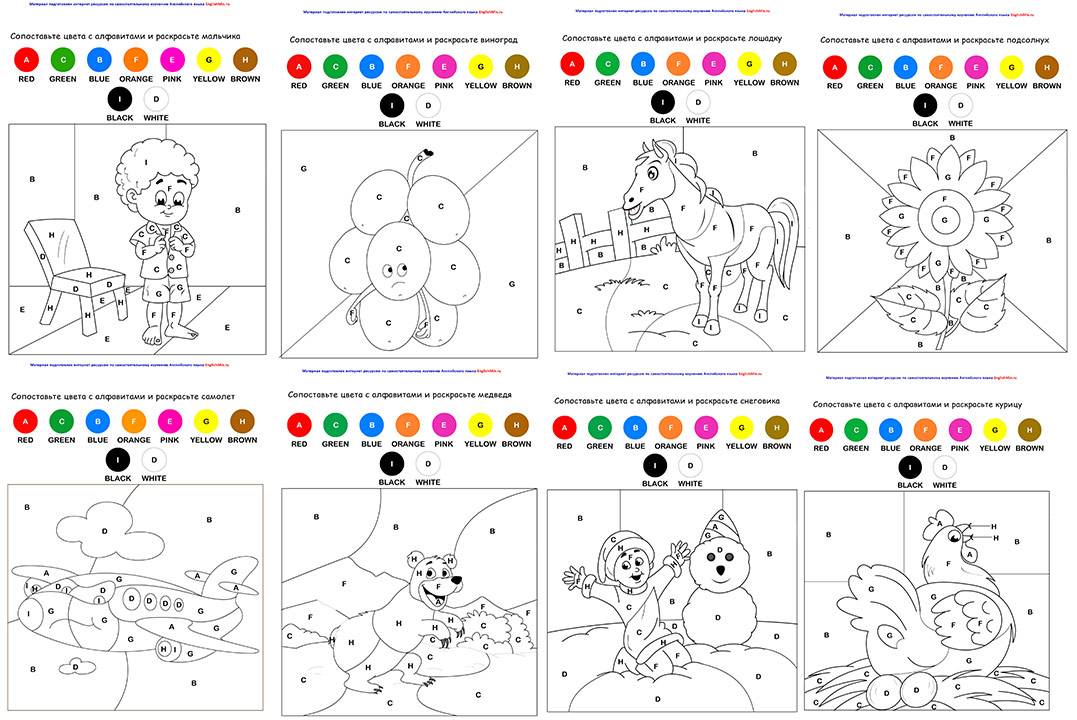 Следующее, что вам будет интересно – это раскраска по цветам на английском для детей.