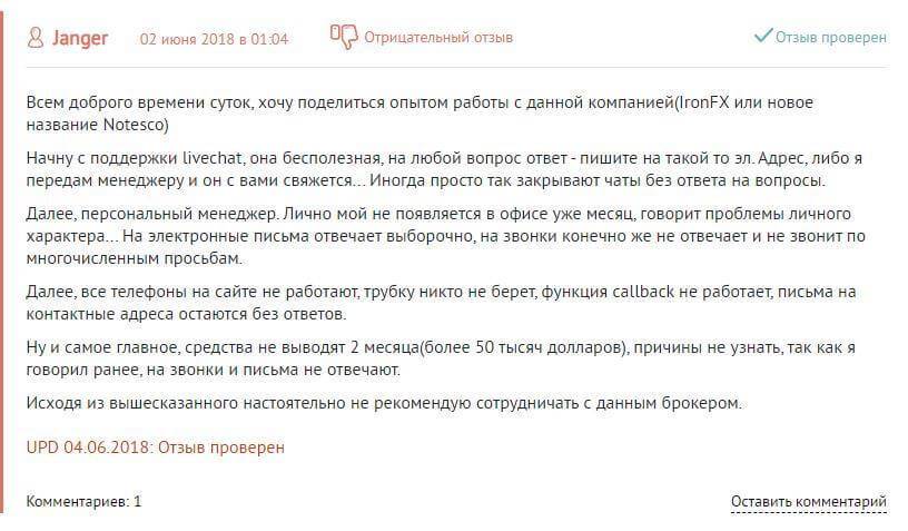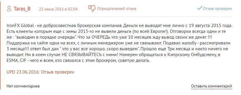 Основные претензии к АйронФх на профильных форумах и специализированных ресурсах — невывод средств. Есть отзывы, датируемые еще 2015 годом: