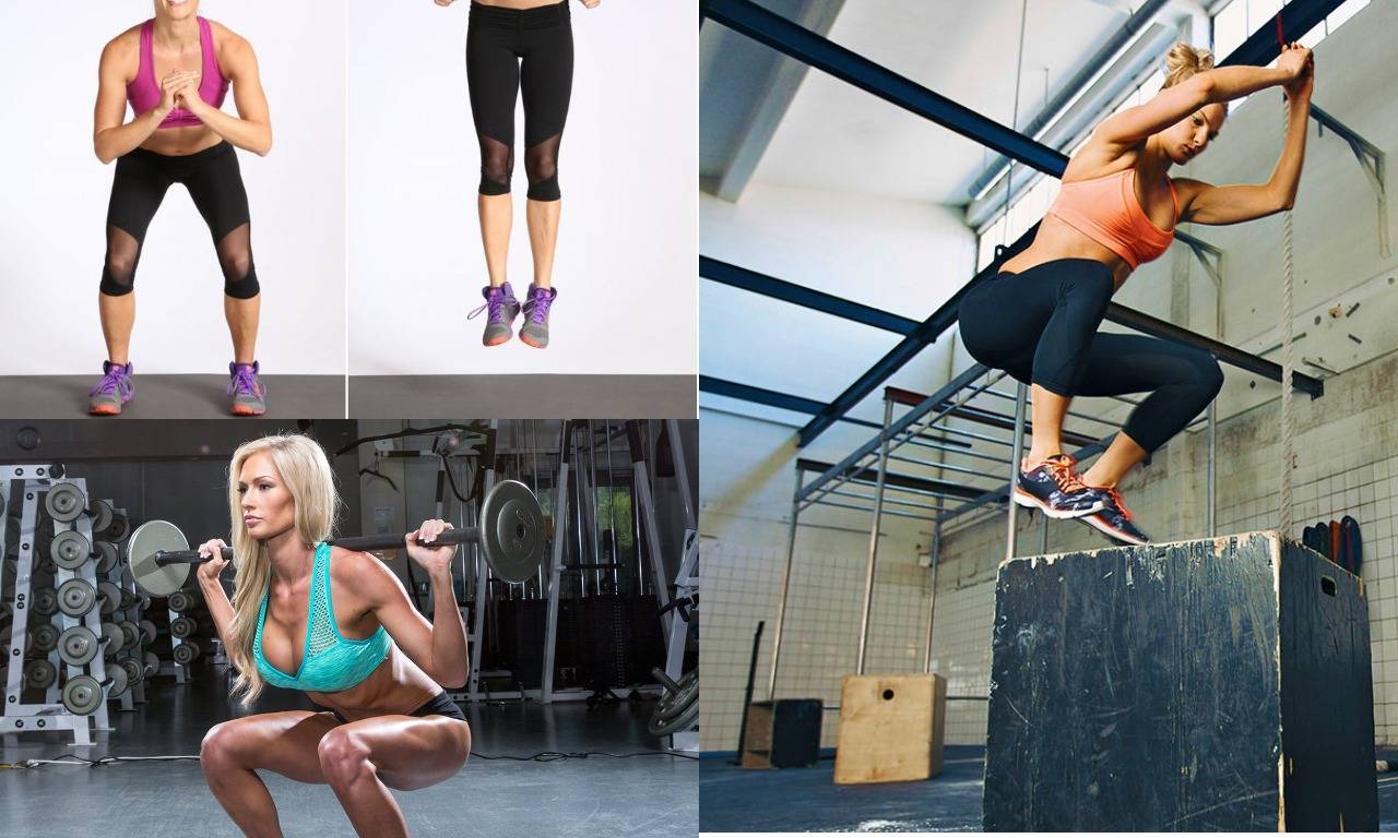 Приседания, прыжки из полусидячего положения, запрыгивание на возвышенность